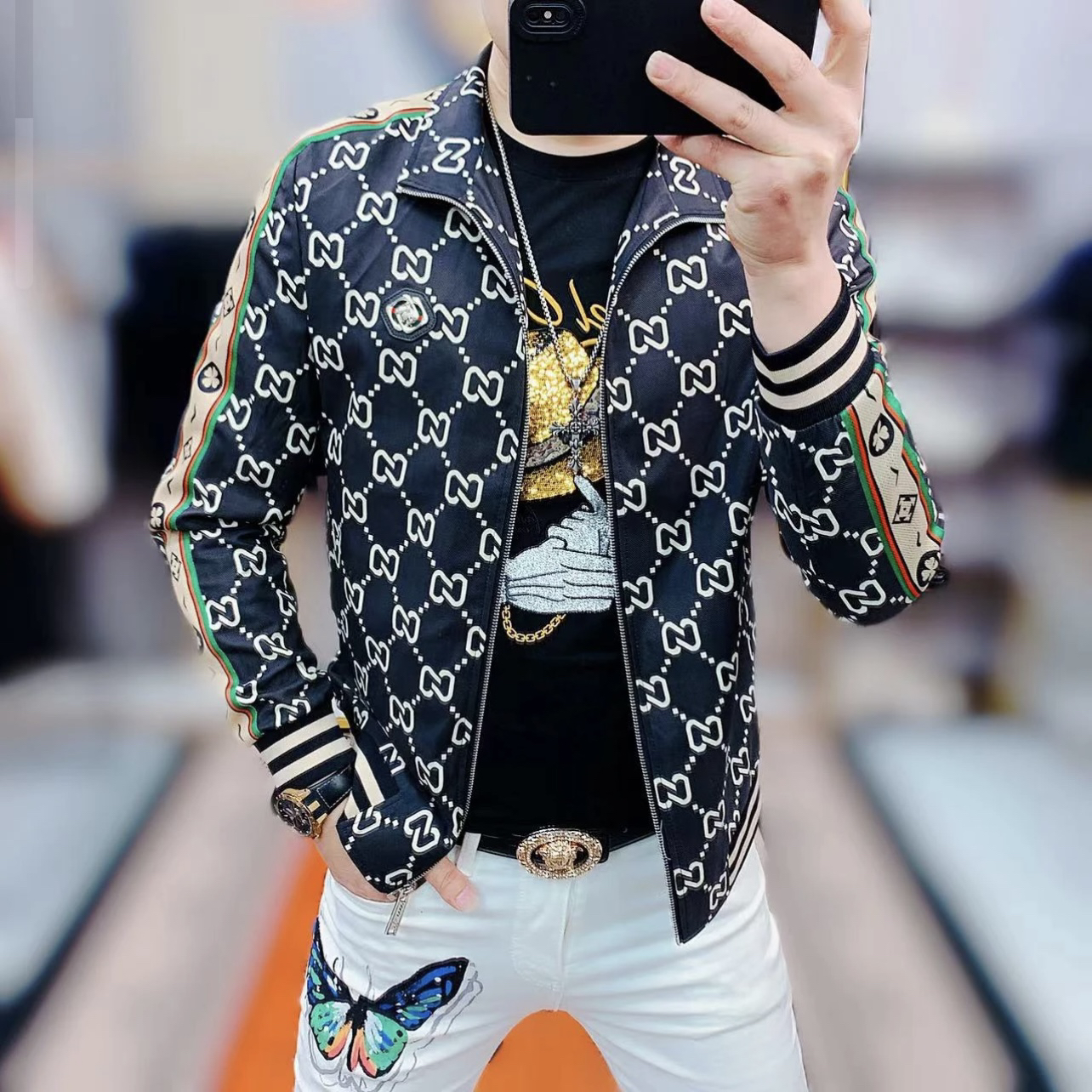 欧货站轻奢2024春季新品潮男贴织带相拼搭配时尚立领休闲夹克外套