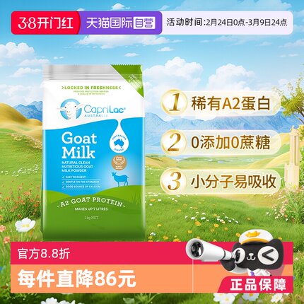 【自营】澳洲CapriLac佳倍营A2纯山羊奶粉成人中老年无糖高钙1KG