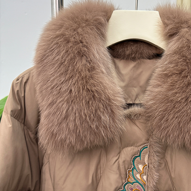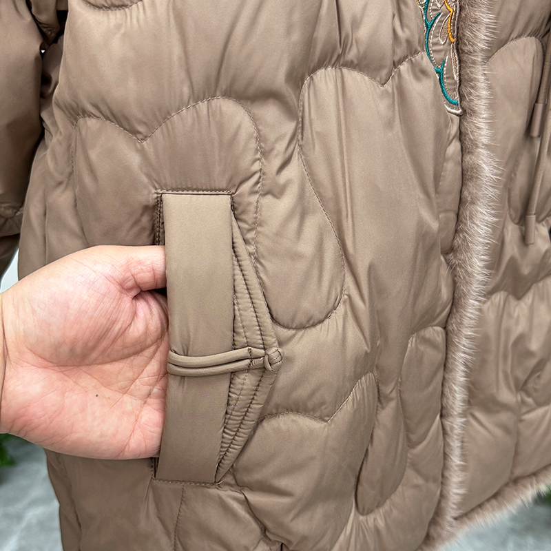 妈妈冬装真毛领羽绒服白鸭绒外套