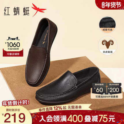 红蜻蜓男鞋秋季新款软底豆豆鞋男士真皮一脚蹬休闲皮鞋乐福鞋男款