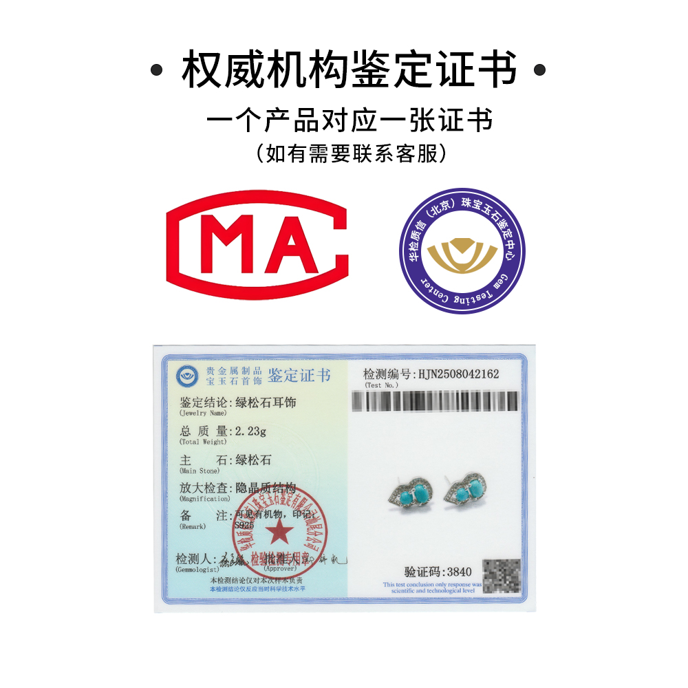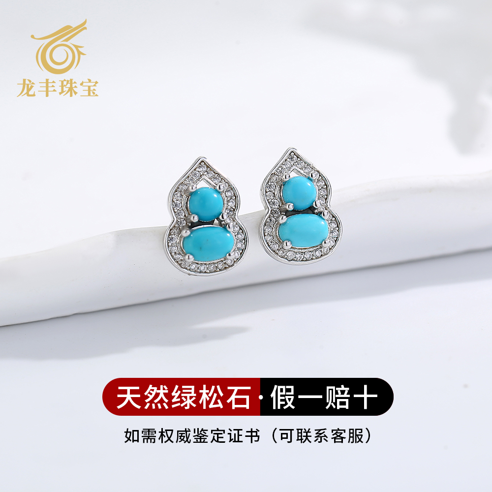 龙丰绿松轩珠宝正品天然绿松石S925银葫芦耳钉女款轻奢耳饰高级感
