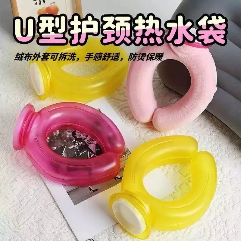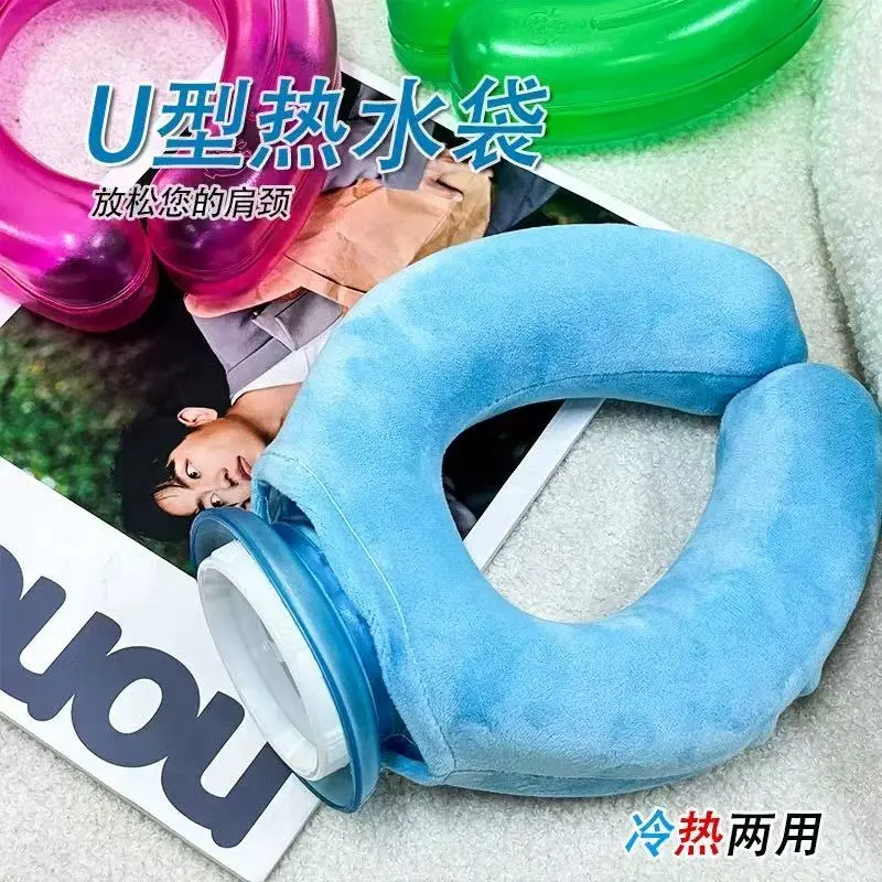 u型颈椎热水袋热敷颈肩U型暖水袋透明送绒布套热敷冰敷两用可爱