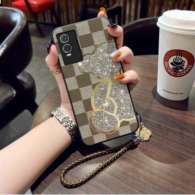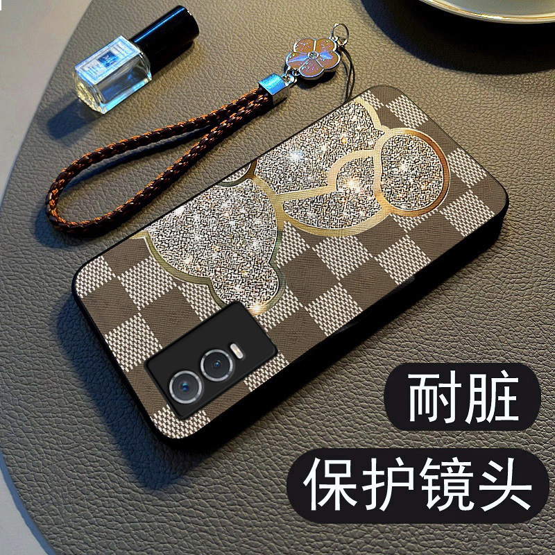 适用于vivoY76s手机壳新款y95保护套布纹硅胶y77卡通全包防摔y53s手腕挂绳y73s女款网红y55s高级感y32潮牌外