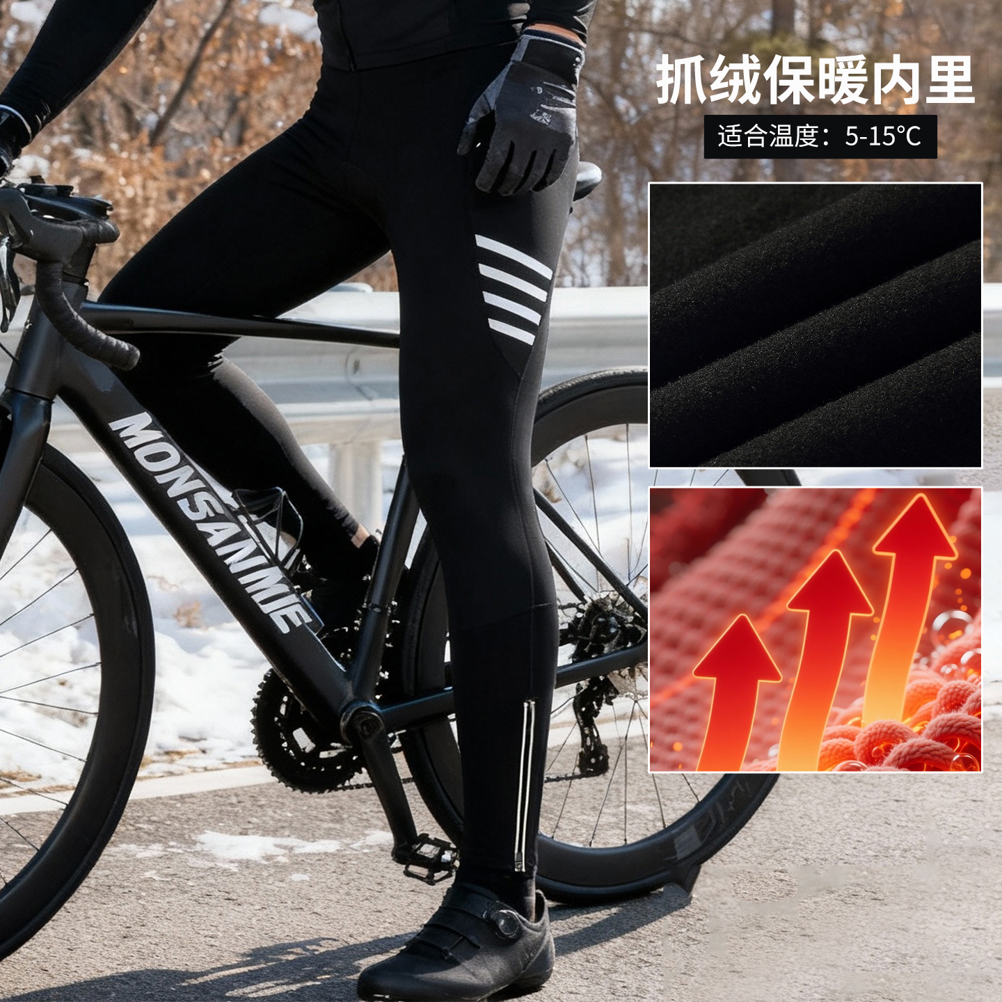 沃萨维公路车秋冬抓绒骑行裤男山地自行车保暖加厚硅胶减震排汗裤