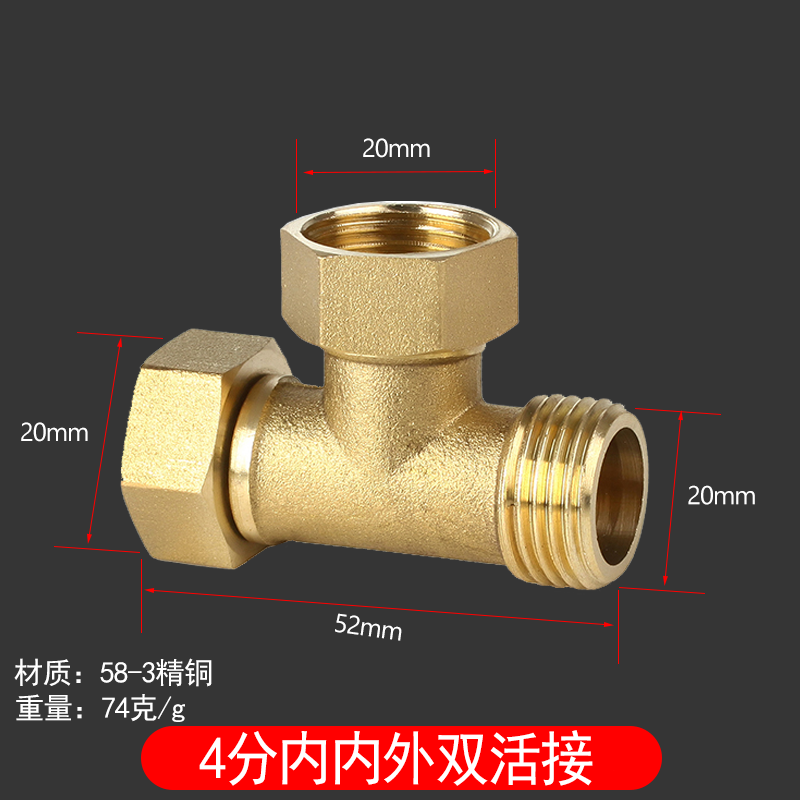 4分内外丝全铜活接三通燃气管铜配件分水器热水器铜活接弯头直接
