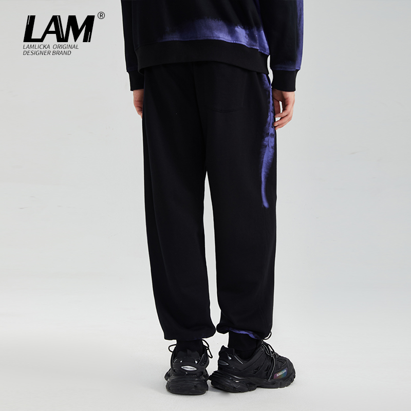 LAMLICKA扎染渐变运动休闲美式卫裤男潮牌秋冬季情侣宽松束脚长裤