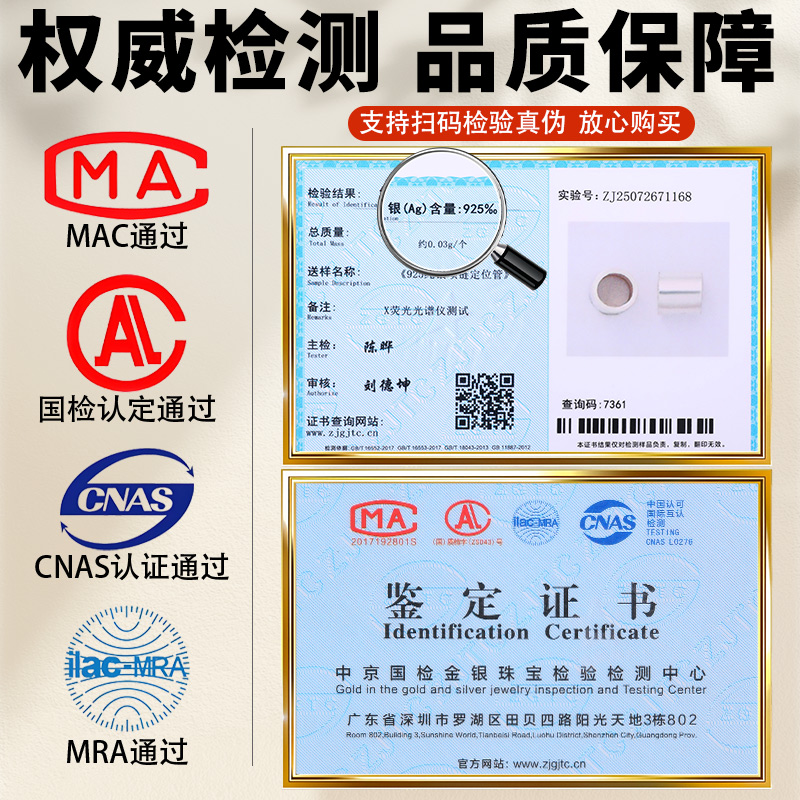 S925纯银定位珠可夹扁收尾扣diy固定钢丝鱼线珍珠手链项链定位管