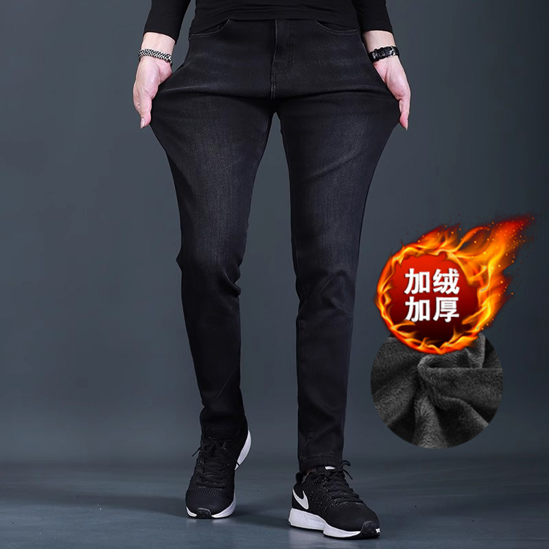 加绒保暖牛仔裤男款秋冬季修身小脚2025新款弹力休闲男士裤子厚款