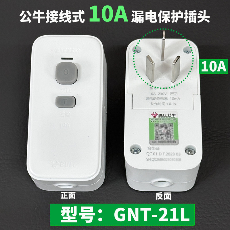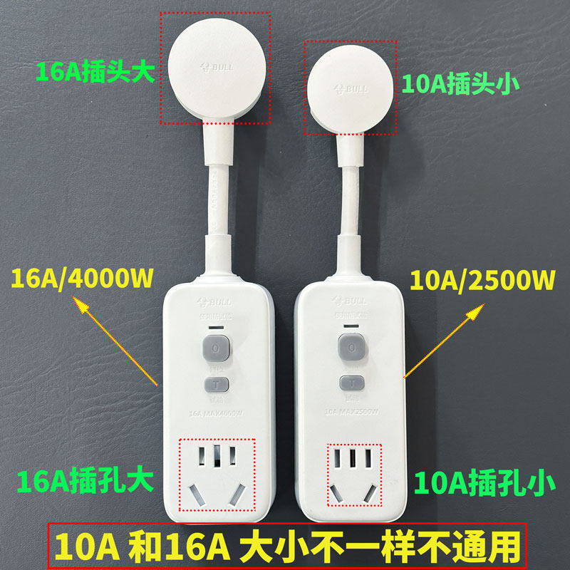 公牛漏电保护器插头电热水器16a空调漏保家用10a防漏电插座