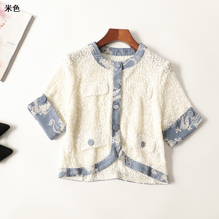 245344南油高端欧洲站高货女装气质国风名媛春短款圆领短袖外套