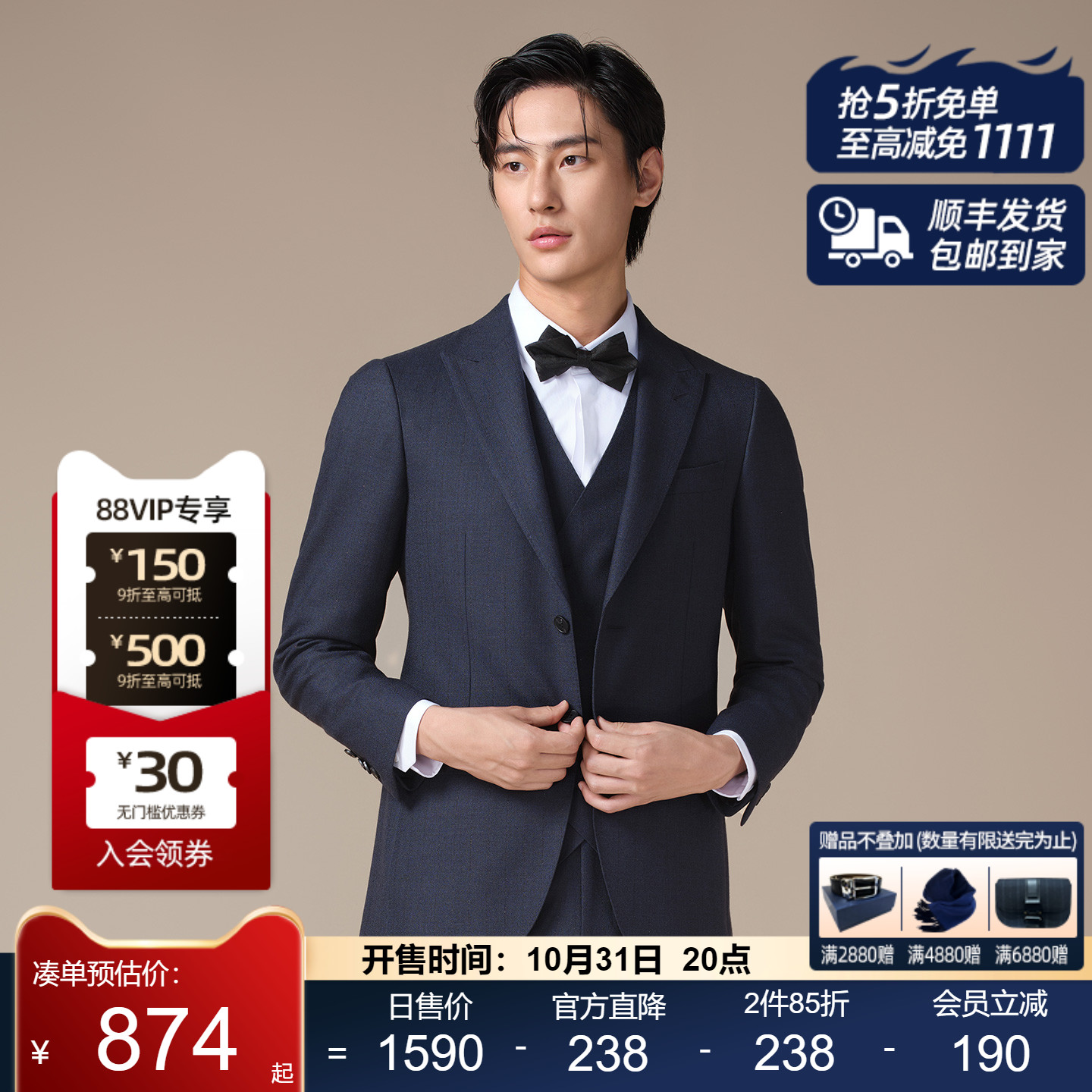 BONI/堡尼秋冬新品商务西服套装羊毛混纺西装净色西裤男AS661221A