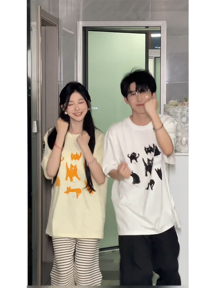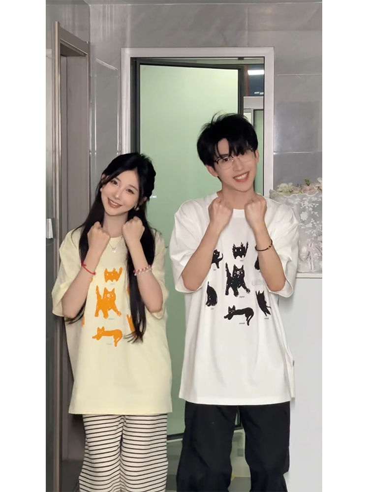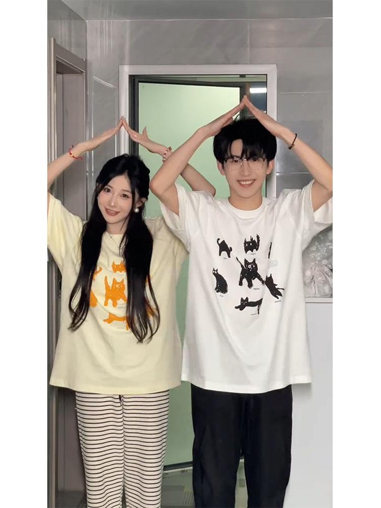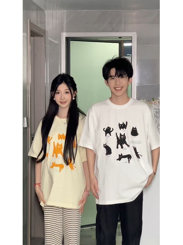 夏季重磅纯棉高级感短袖T恤男女设计感小众卡通动漫休闲情侣装