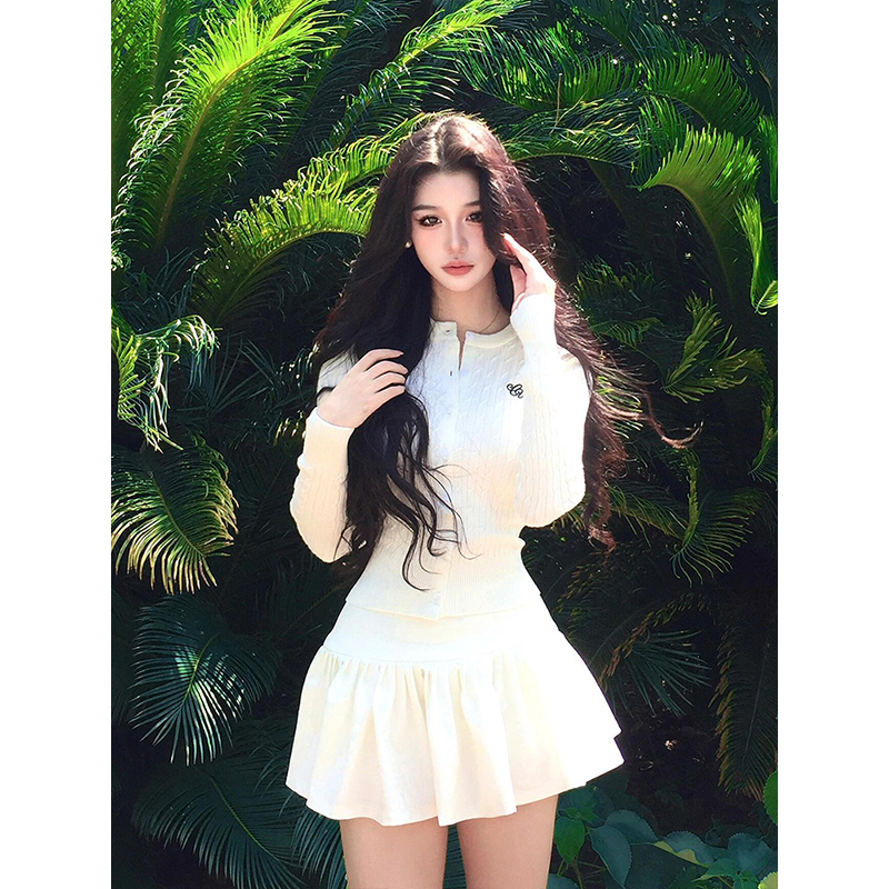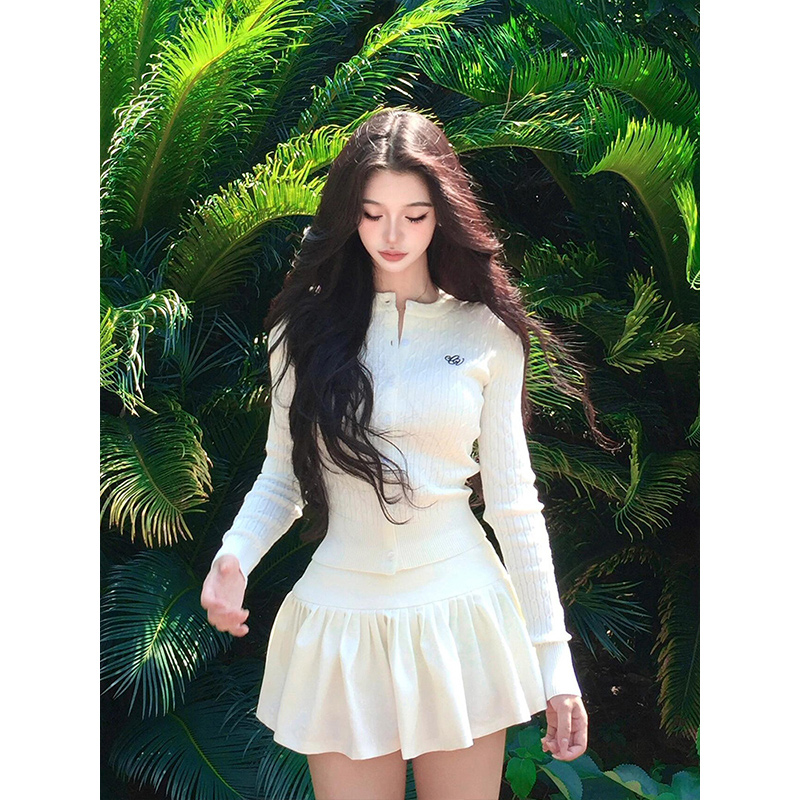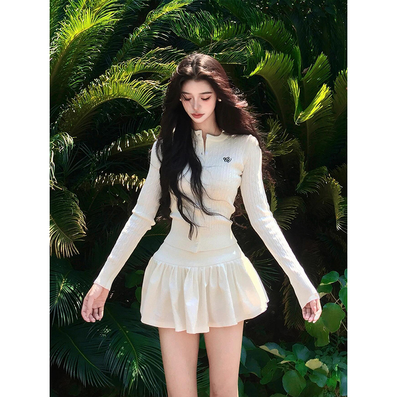 XZY/欣争艳 微胖mm辣妹修身刺绣毛衣针织衫女早秋高腰a字半裙套装