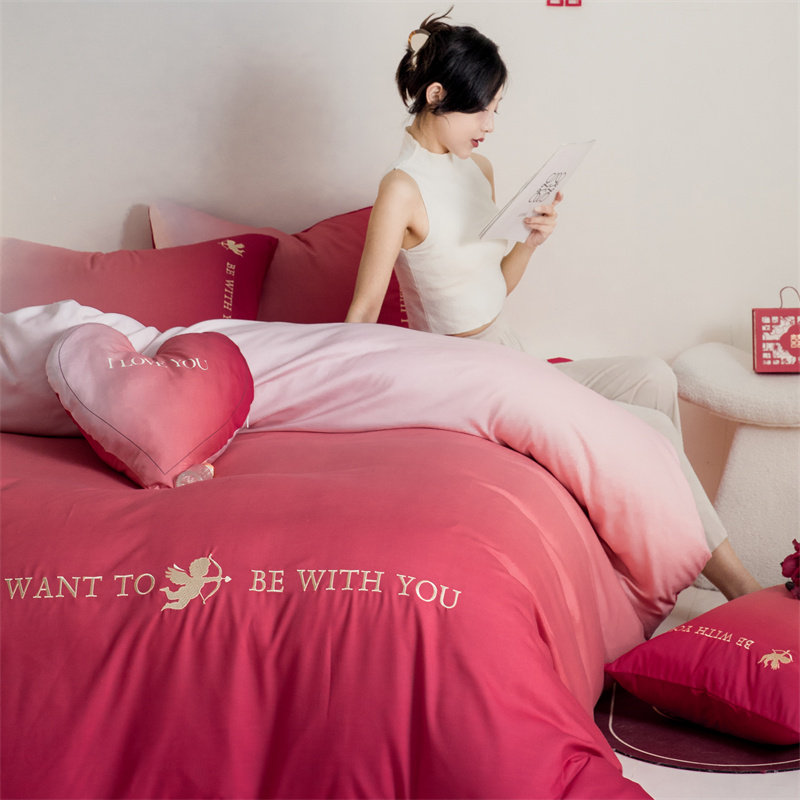 高档新婚庆四件套新婚房陪嫁喜被床上用品结婚大红色婚礼床单被套