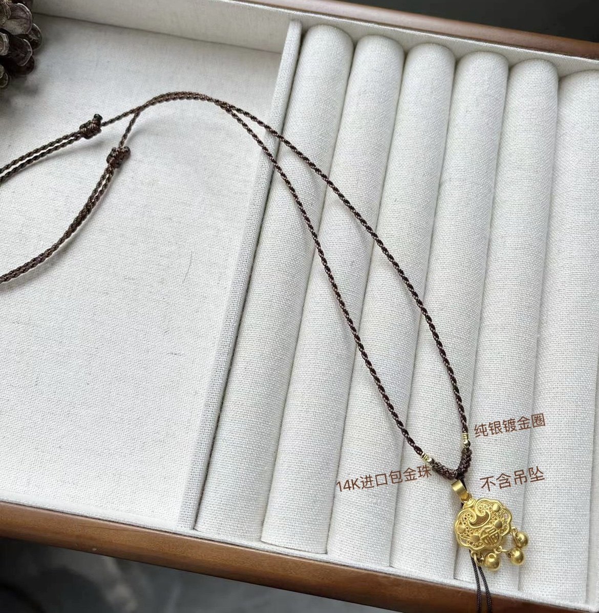 高档翡翠和田玉金吊坠简单时尚个性百搭挂绳细款项链绳黄金蜜蜡款