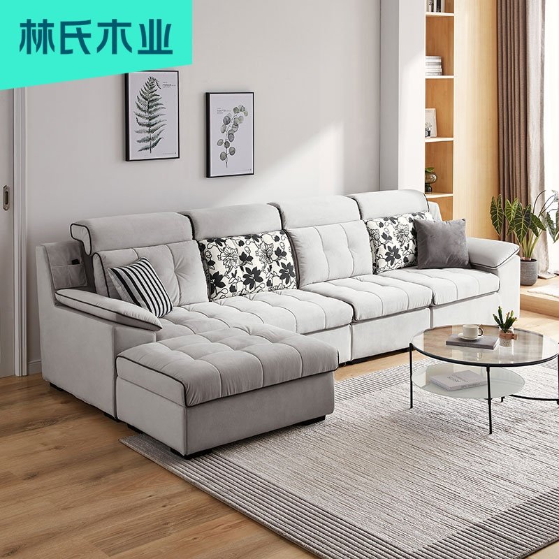 林氏木业现代简约两用布艺沙发床伸缩客厅多功能家具组合套装967