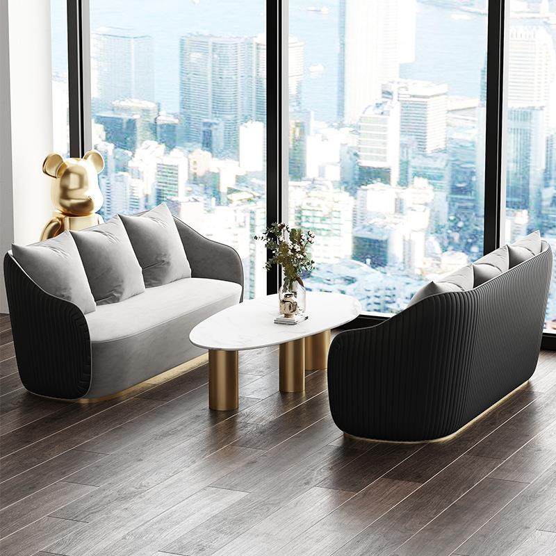 北欧皮艺沙发椅异形茶几组合商业办公区接待会所单人三人位沙发