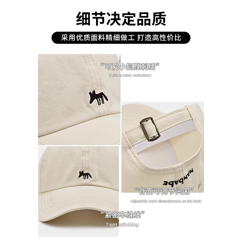 小狐狸刺绣棒球帽子女夏季宽帽檐软顶显脸小防紫外线紫色鸭舌帽男