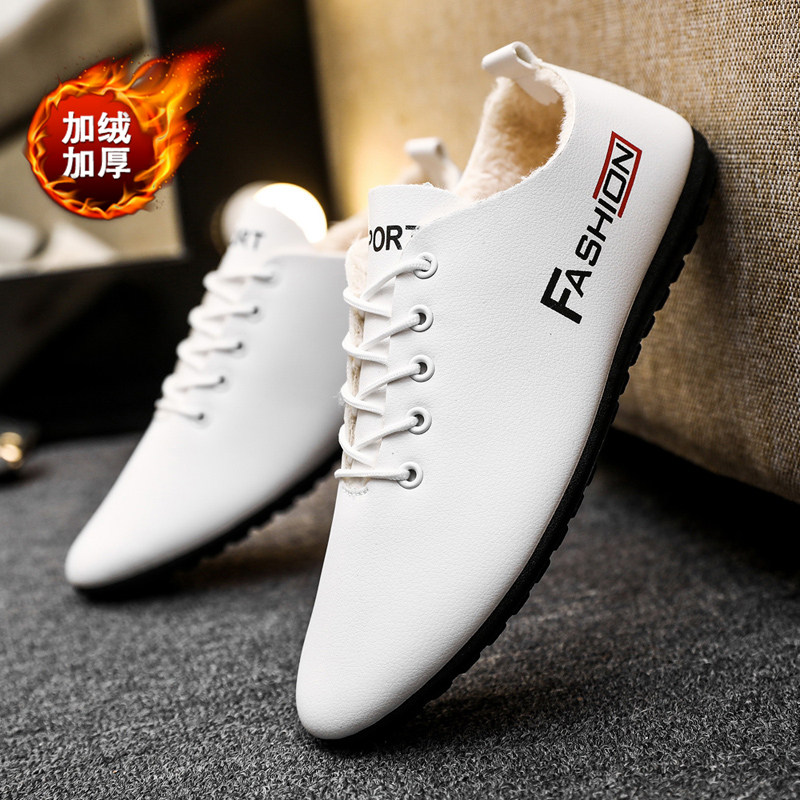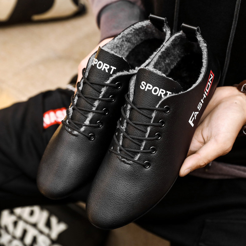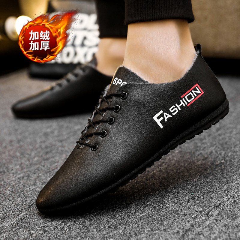 男鞋冬季加绒加厚休闲鞋皮鞋防水防滑豆豆鞋男生韩版保暖二棉鞋