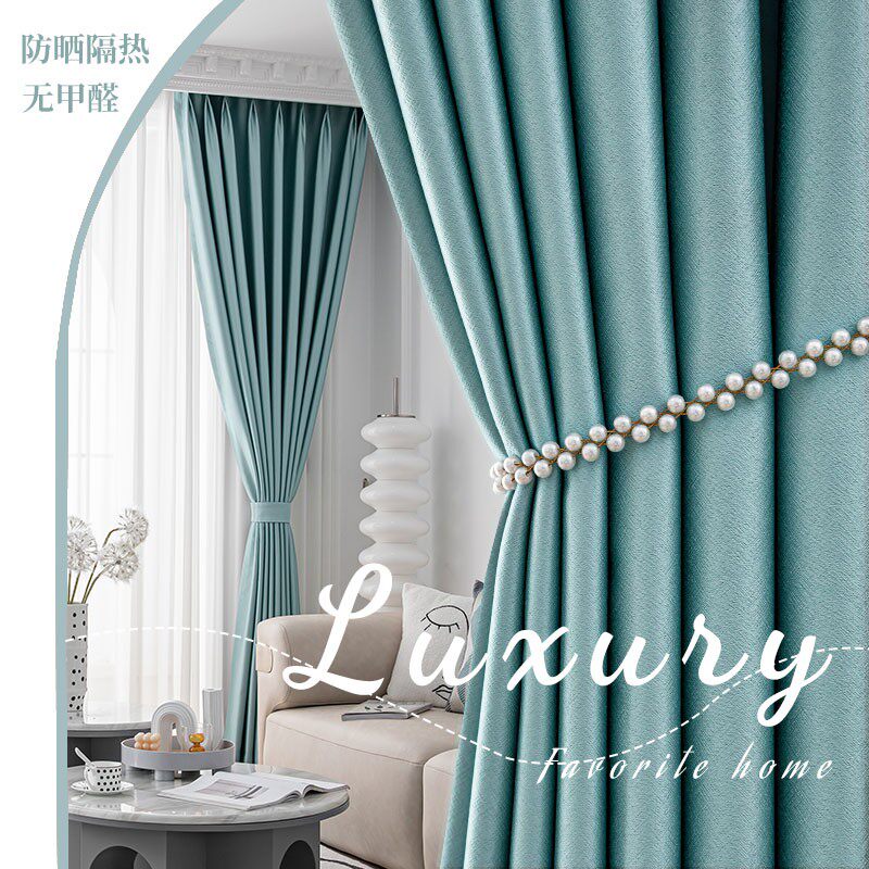 全遮光加厚窗帘防晒隔热抗外线现代简约客厅卧室遮阳纯色飘窗布帘