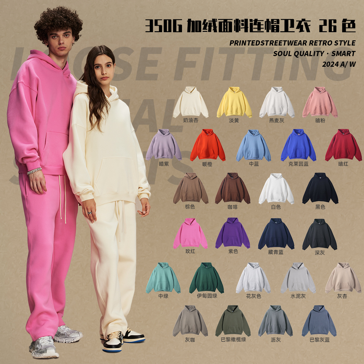 2025秋冬新品oversize加厚连帽潮牌男卫衣美式套头350g纯色卫衣