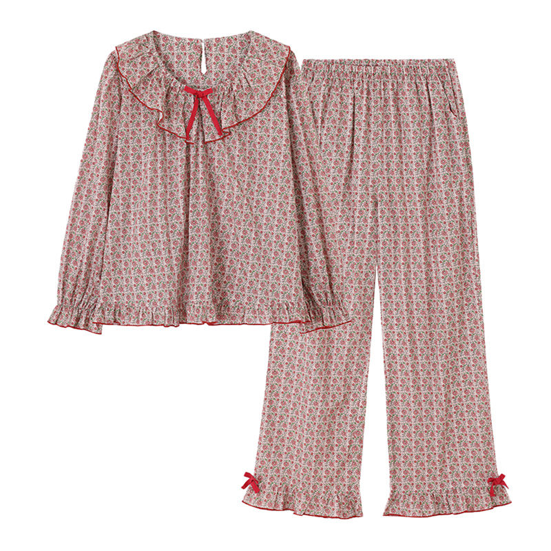 浪莎睡衣女春秋款纯棉长袖女款秋季加大码碎花家居服夏天薄款套装