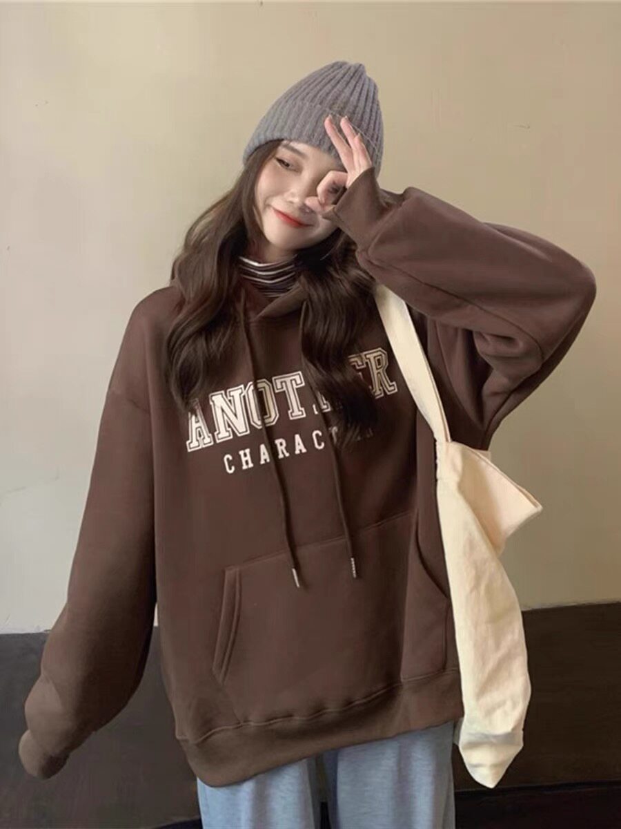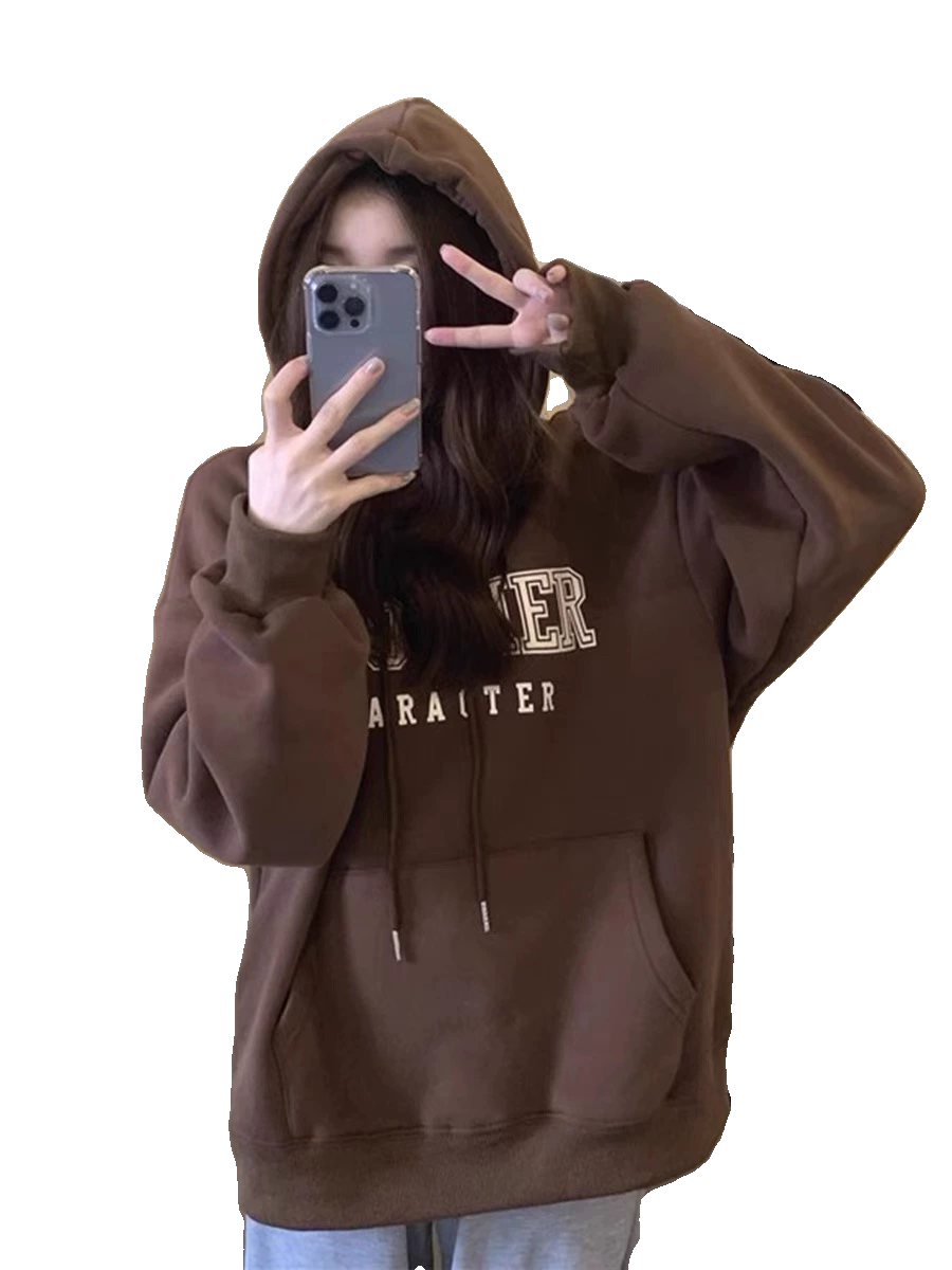 超好看韩版连帽卫衣加绒加厚宽松休闲纯棉复古秋冬新款ins外套女