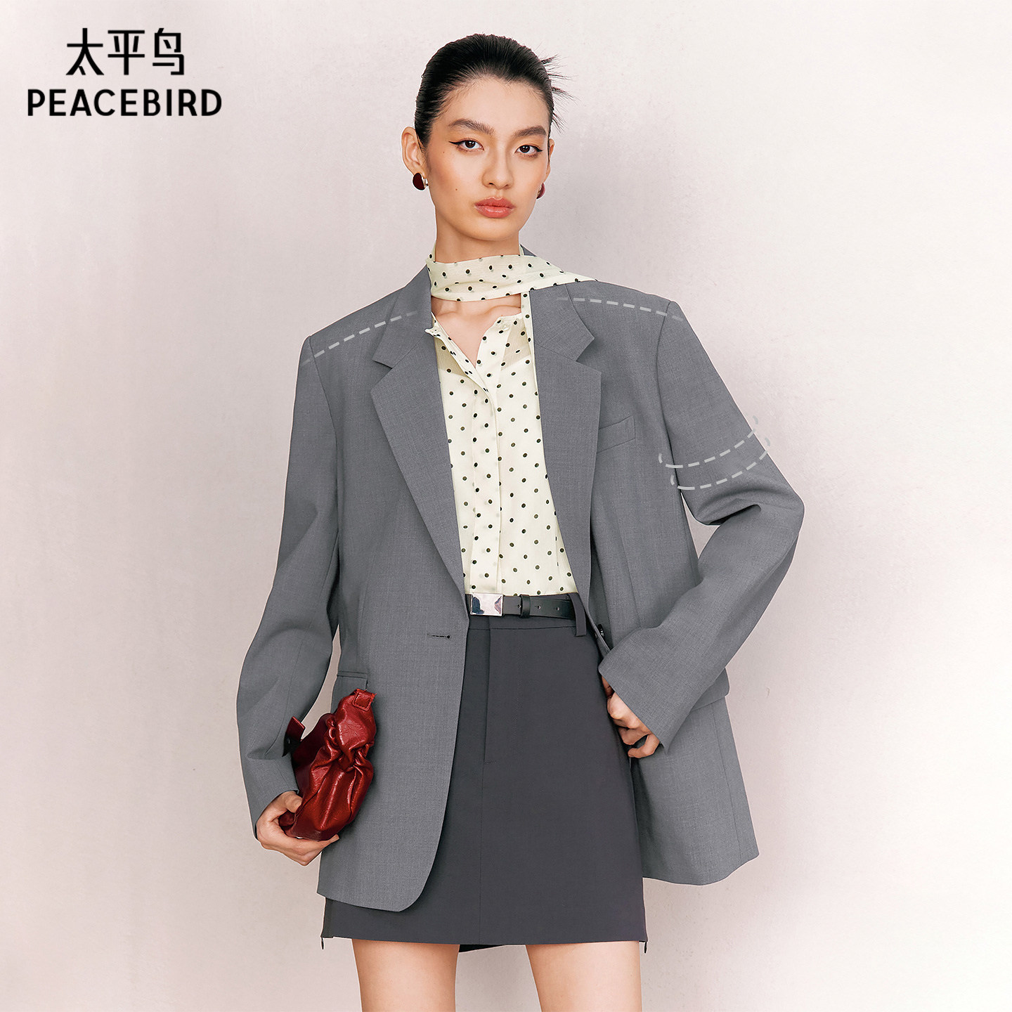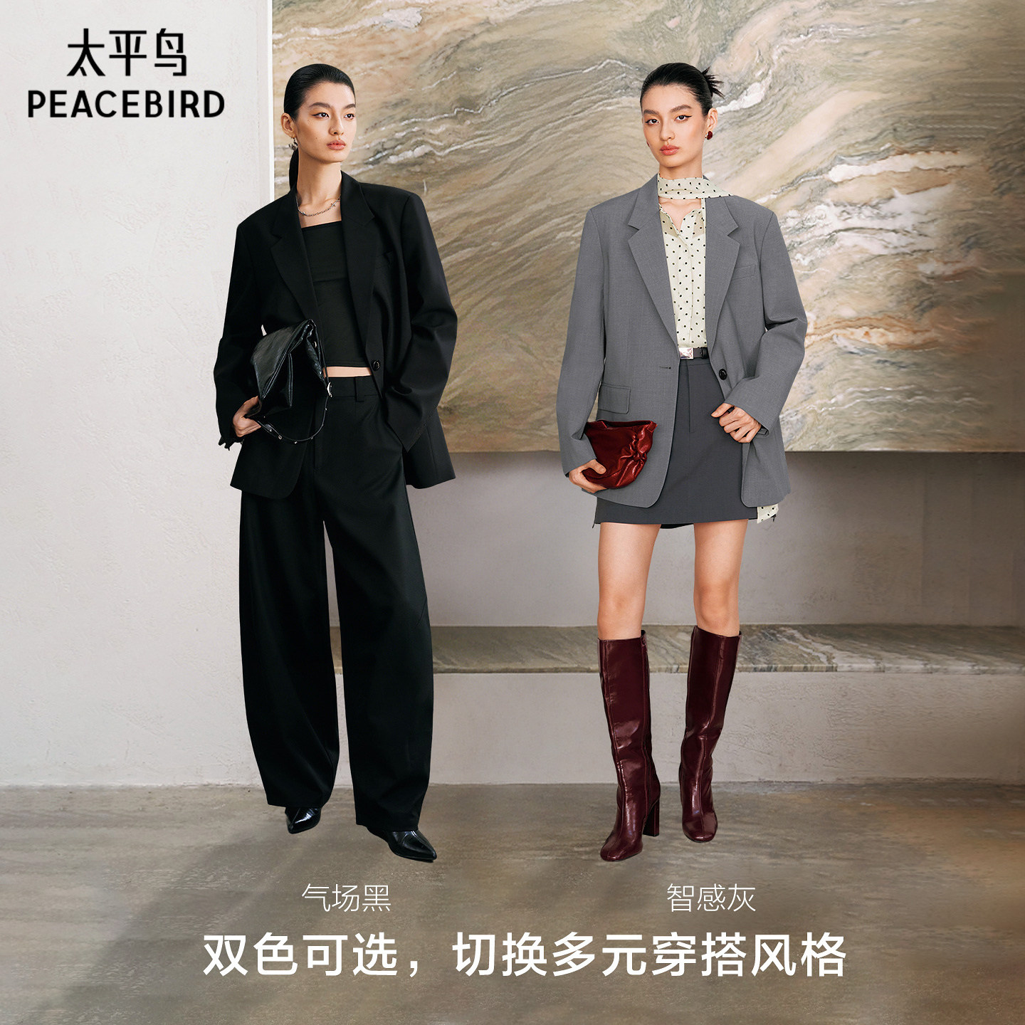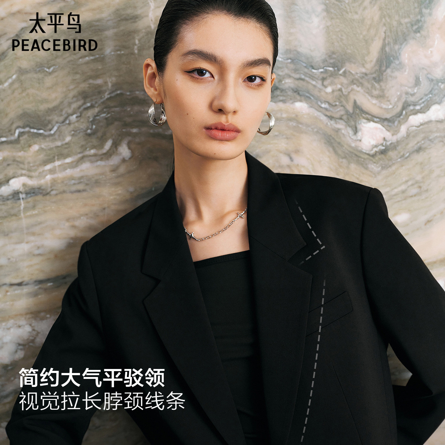 太平鸟纸片人西装平驳领经典廓形仪式感西装外套女挺括羊毛混纺