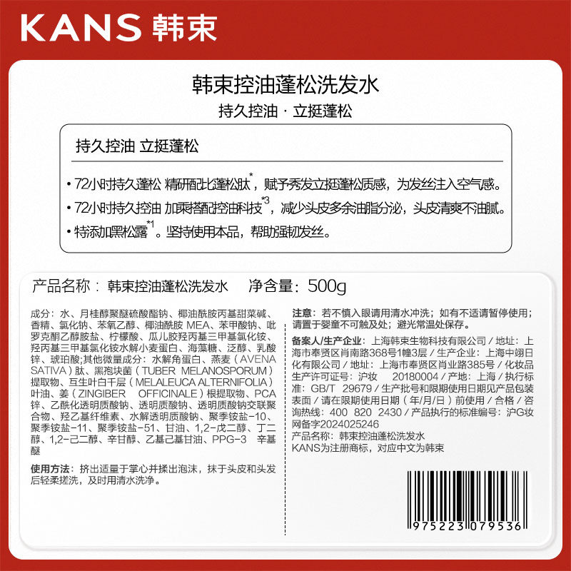 韩束蓬松控油洗发水