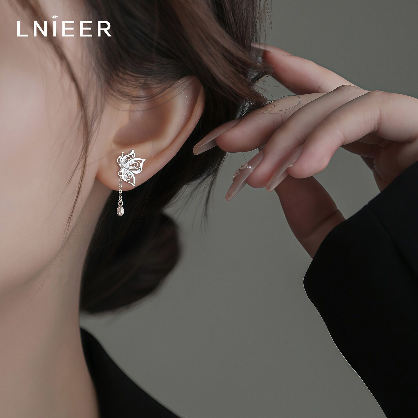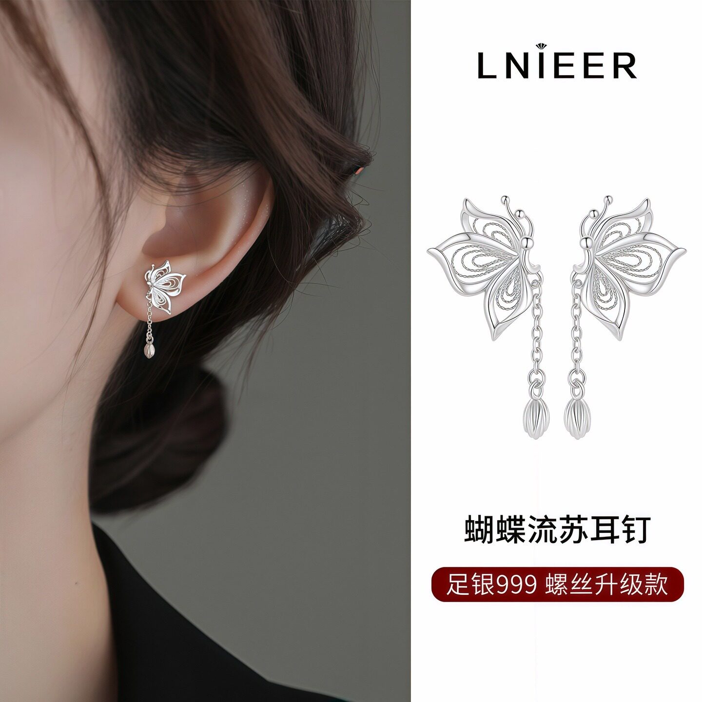 999纯银流苏蝴蝶耳钉女