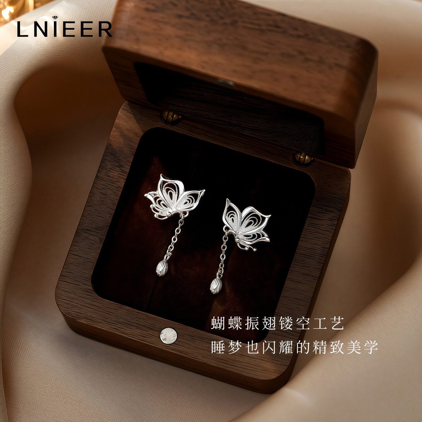 999纯银流苏蝴蝶耳钉女2026新款爆款耳环轻奢小众设计新中式耳饰