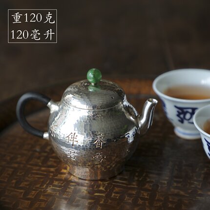 秦藏阁香雪玉摘雕刻纯银泡茶壶
