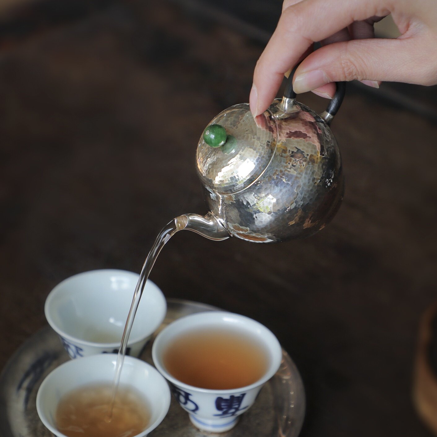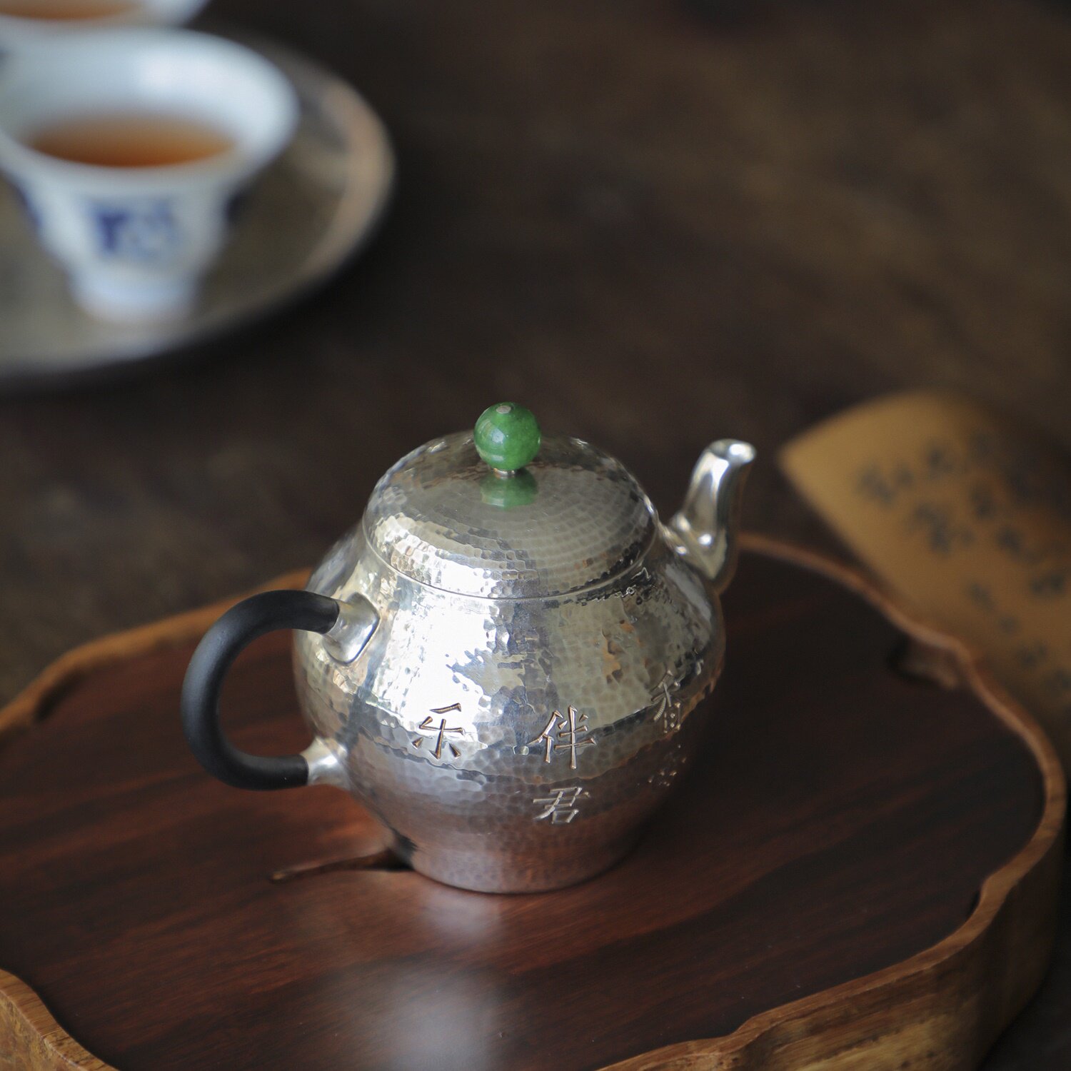 纯银时代香雪玉摘雕刻纯银泡茶壶 999足银小壶手工银茶具120ml