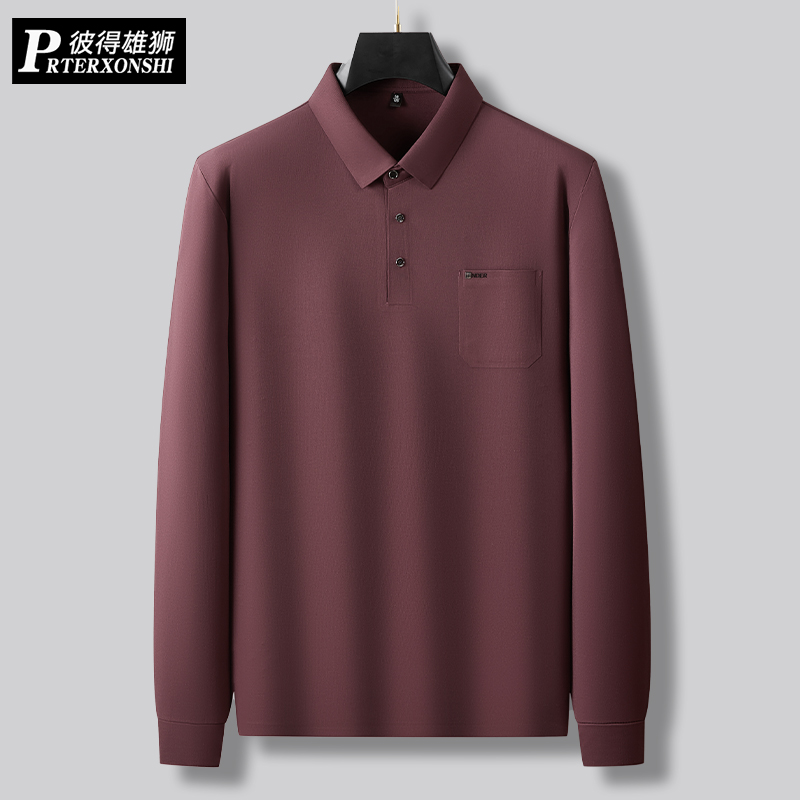 秋冬加肥加大码男士长袖T恤胖子宽松休闲翻领中年男装休闲体恤