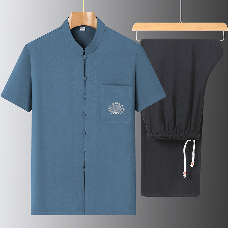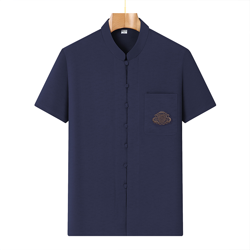 中老年唐装男士爸爸夏装短袖w中国风套装爷爷夏季老人衬衫薄款P75