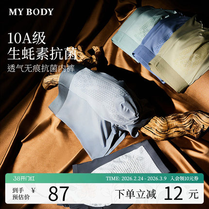 MYBODY商场同款男士内裤纯棉底档10A抑菌性感生蚝素男款平角短裤