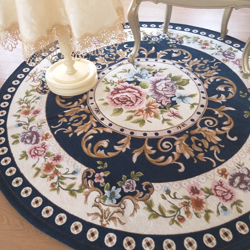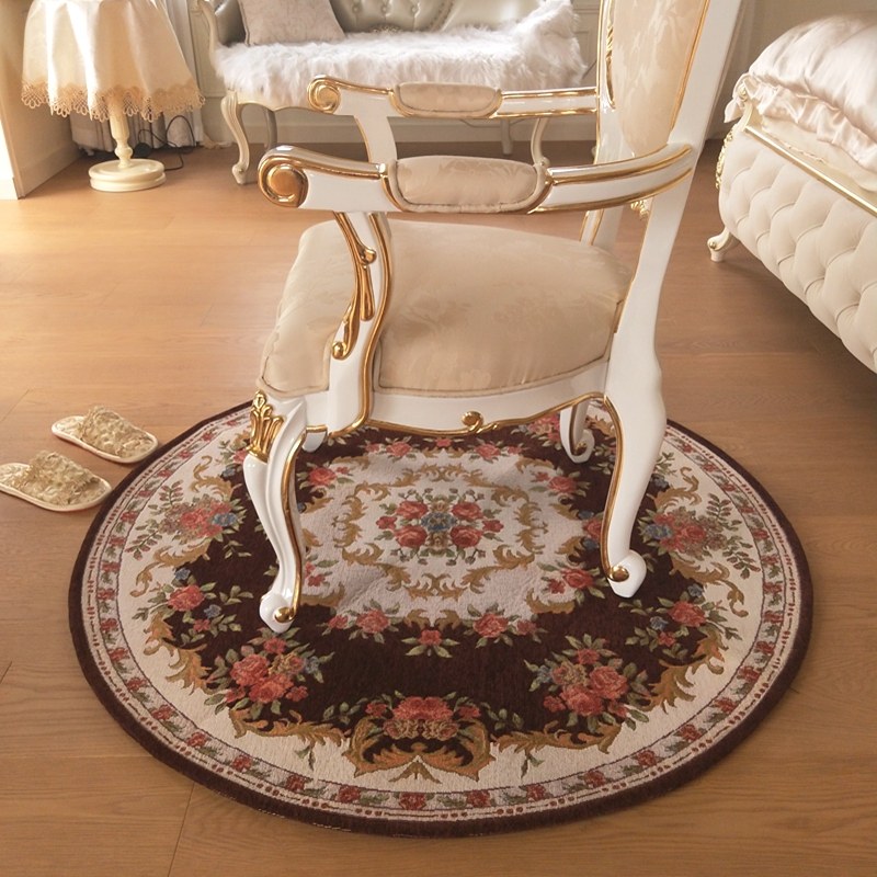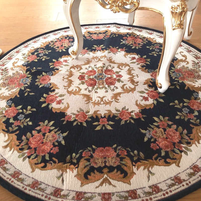 欧式复古玫瑰花圆形地毯布艺提花多尼尔电脑椅垫卧室客厅茶几地毯