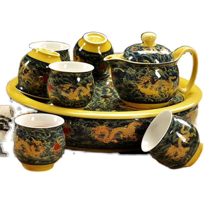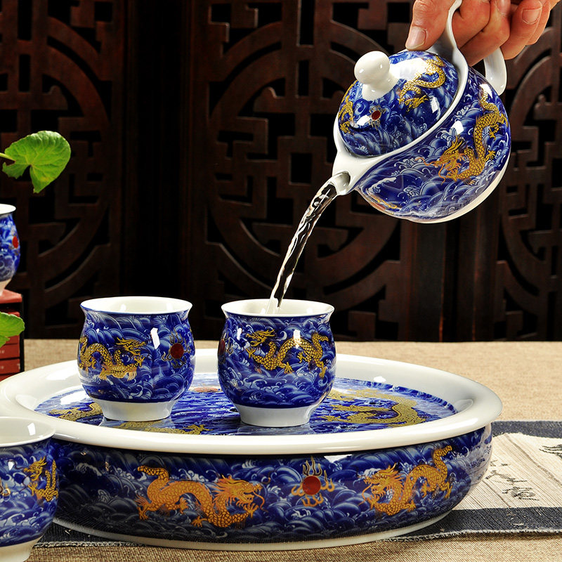 德化青花瓷器大茶壶 整套冰裂陶瓷茶盘双层茶杯 家用茶具套装特价