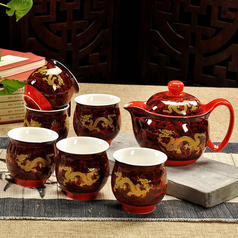 陶瓷青花冰裂双层茶具套装特价