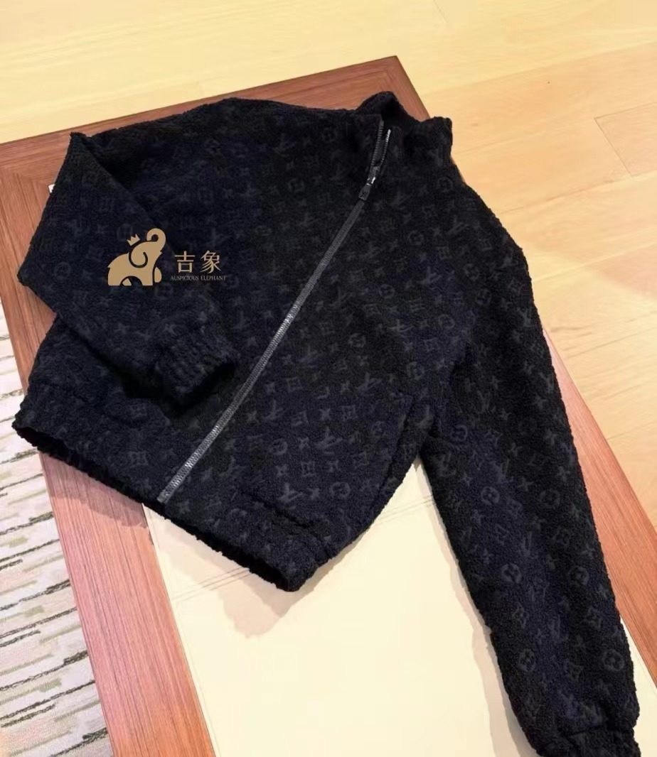 LV路易威登2024新款男装MONOGRAM 摇粒绒拉链束腰夹克外套1AGHTB