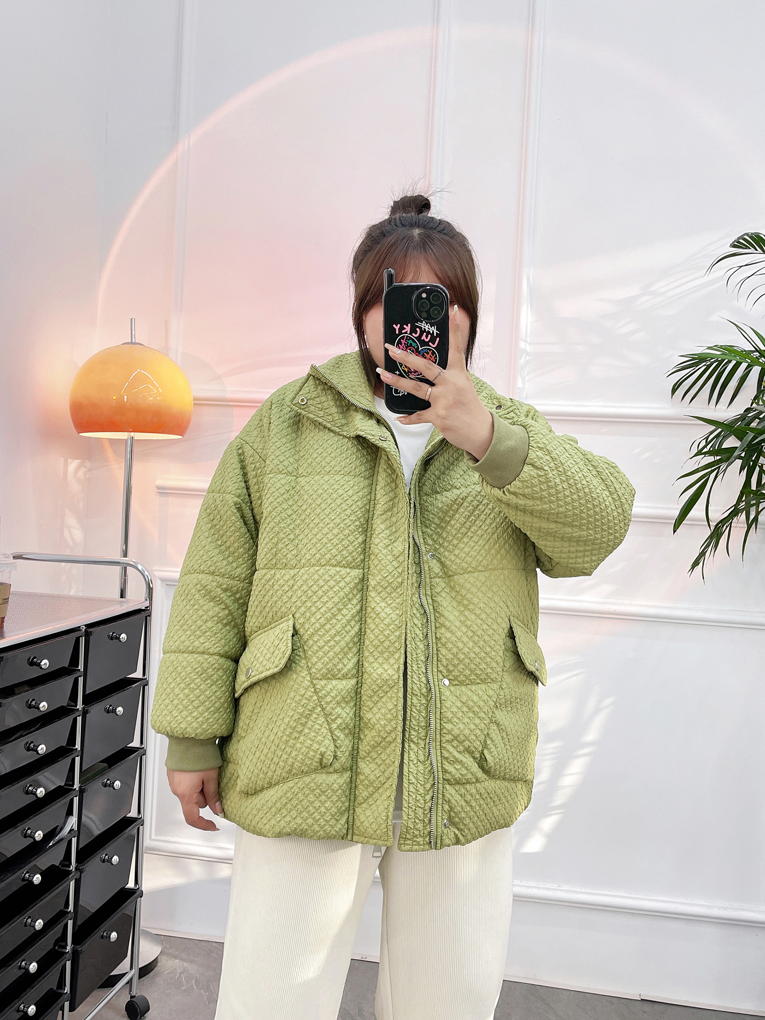 宛宛大码胖MM秋冬季宽松菱格棉服加厚保暖面包服外套甜美收腰棉衣