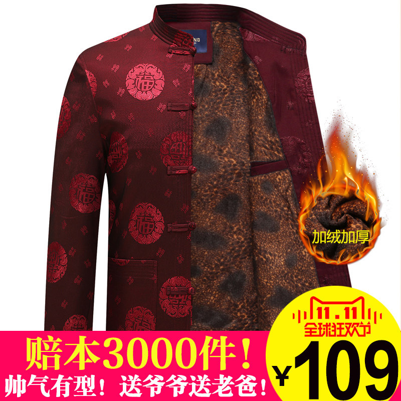 加绒加厚秋冬季唐装外套爷爷棉衣