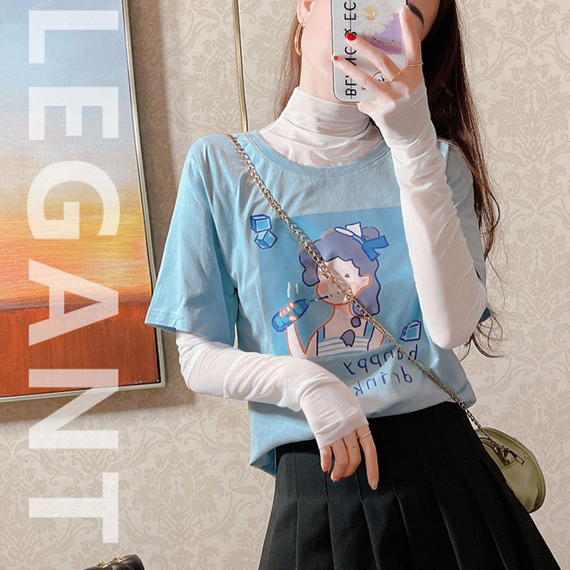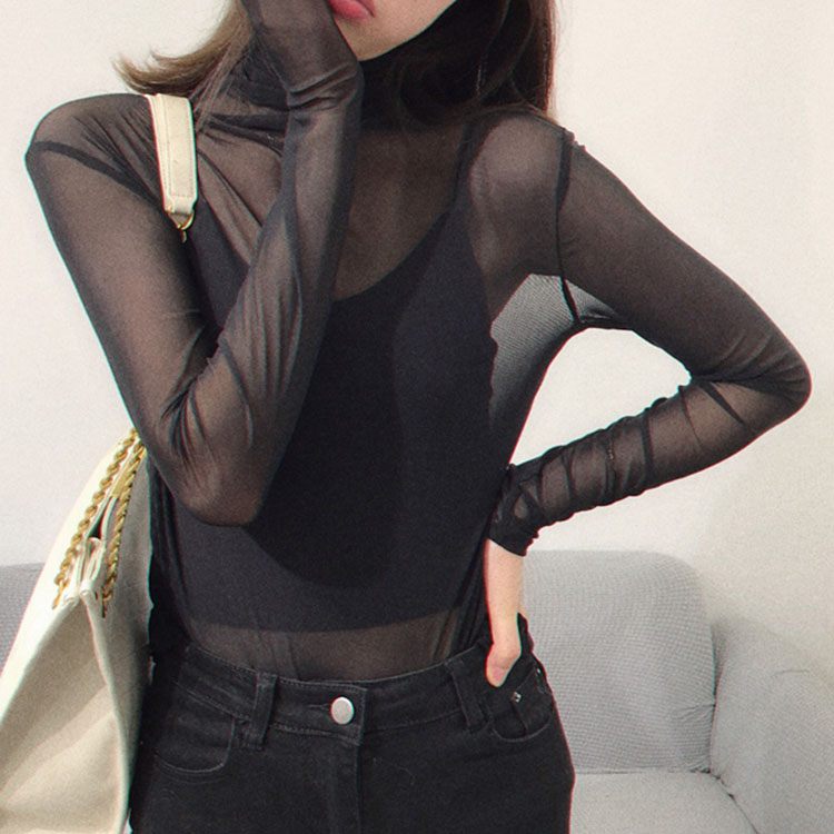 高领网纱打底衫女防晒冰丝内搭秋季白色超薄长袖t恤透视蕾丝上衣