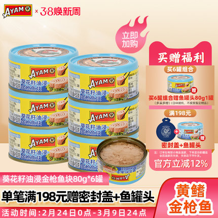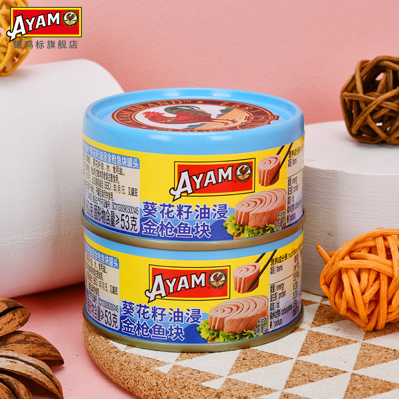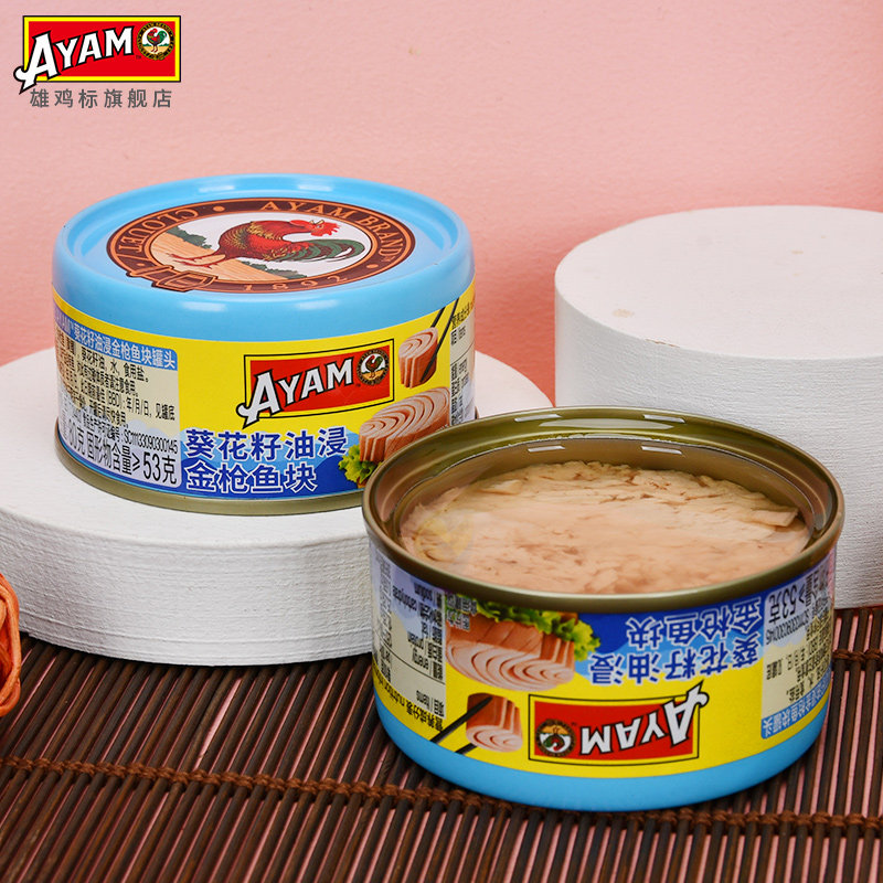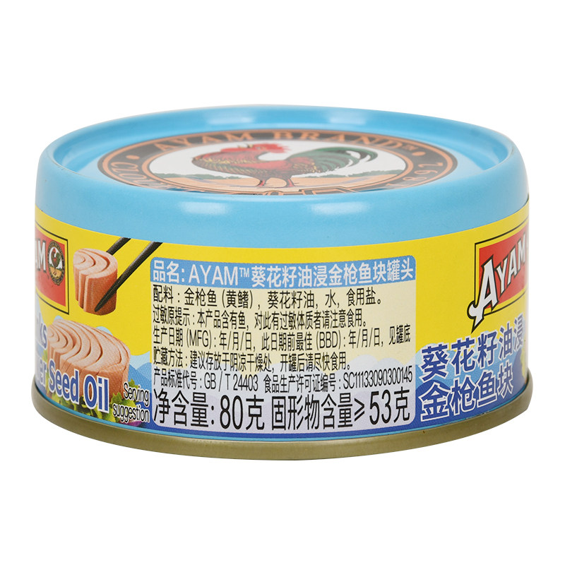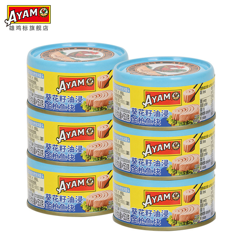 雄鸡标葵花油浸金枪鱼罐头80gx6罐黄鳍吞拿鱼块即食沙拉寿司