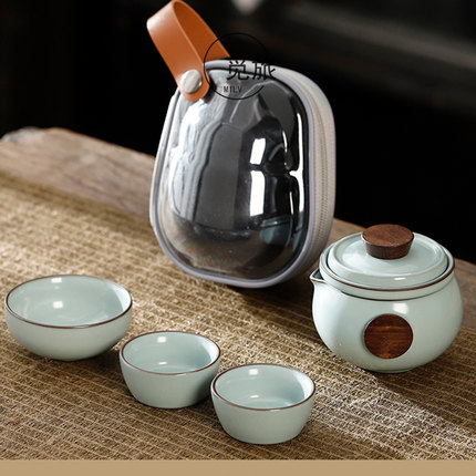 汝窑便携式旅行茶具套装快客杯户外车载随身功夫茶具陶瓷泡茶壶