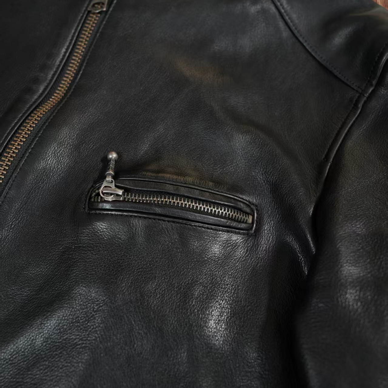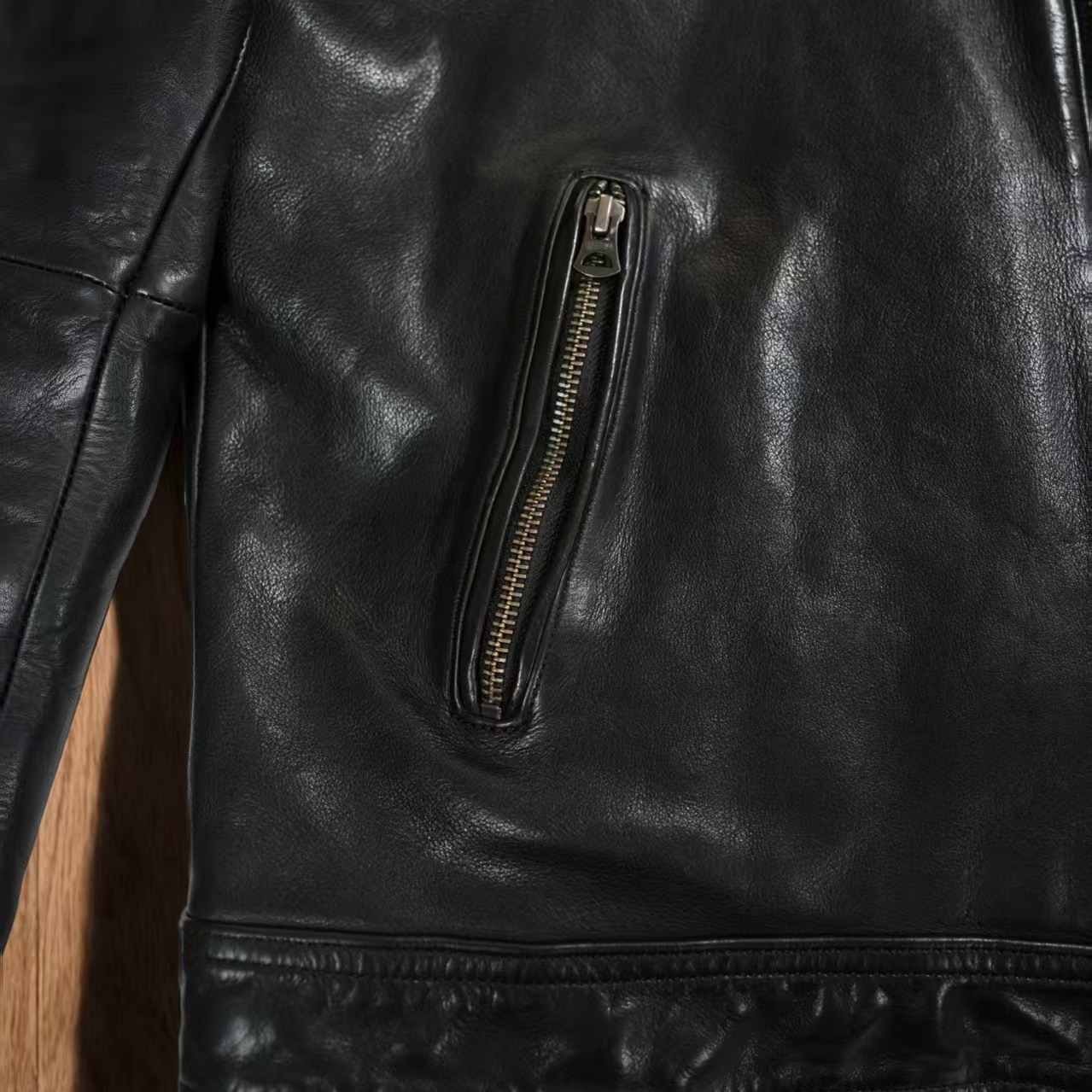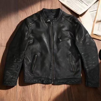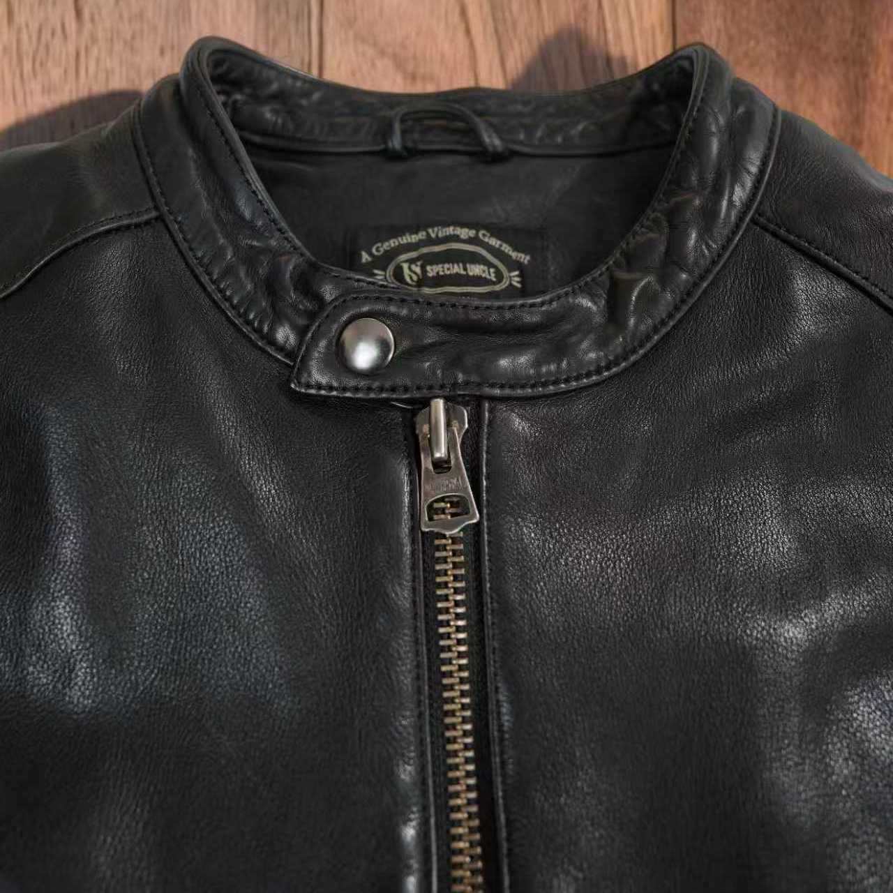 复古大叔FGDS雷神牛皮皮衣重水洗做旧复古真皮秋季立领外套夹克