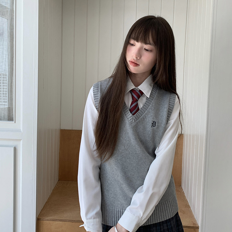 jk制服叠穿针织马甲背心女