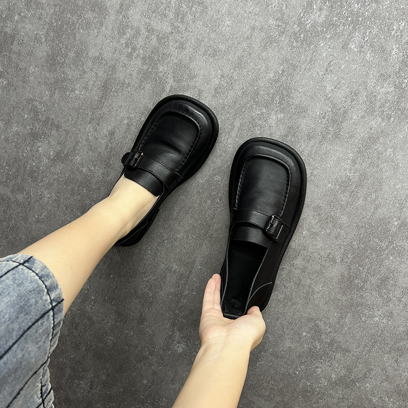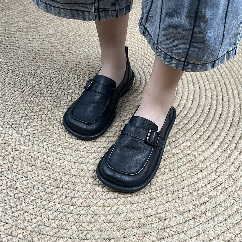 艺鞜2025年秋季新款真皮平底方头懒人套脚单鞋女一脚蹬乐福鞋女