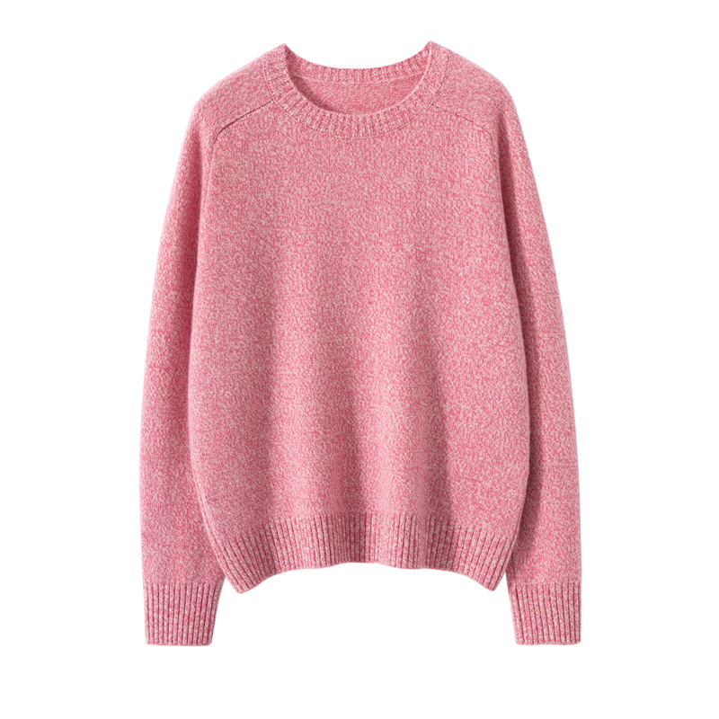 花纱山羊绒衫女圆领加厚宽松针织衫打底羊绒衫套头毛衣上衣
