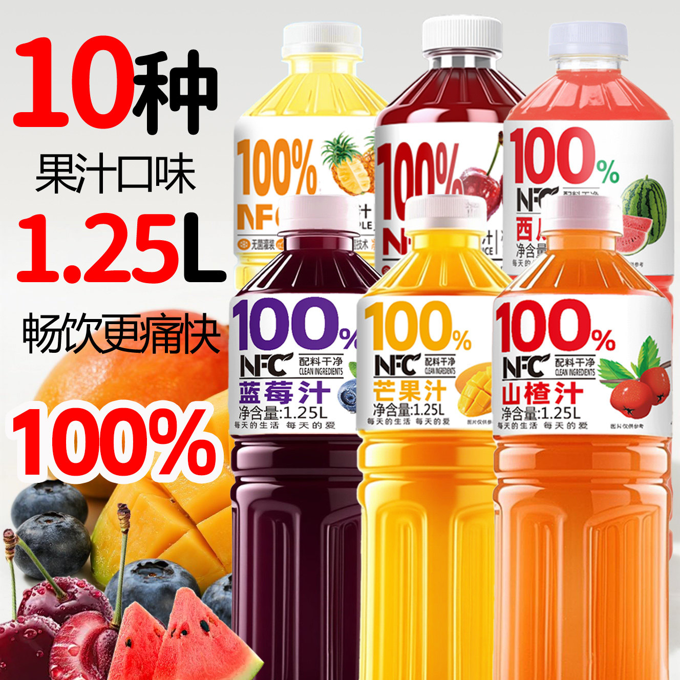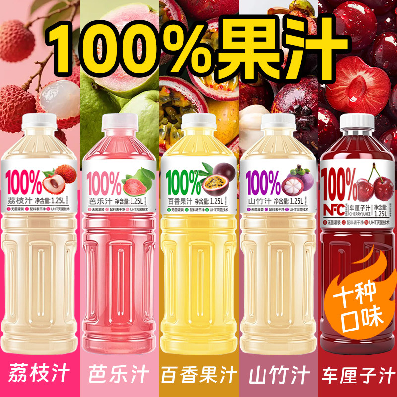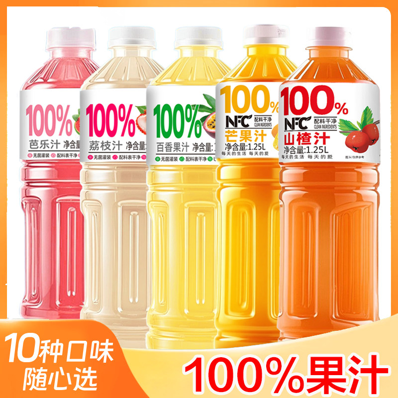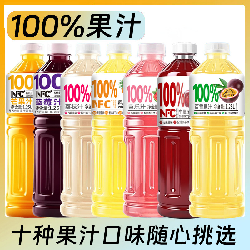 【多口味可选】100%NFC蓝莓汁桃汁葡萄汁砂糖橘哈密瓜1.25L*2大瓶